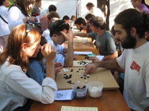El Go, el juego de mesa más antiguo que se conoce, con una historia que se remonta a hace al menos 2.500 años. Es un juego de estrategia que se juega en un tablero cuadriculado con 19 casillas por lado. El objetivo del juego es «conquistar» territorios rodeándolos con piedras, colocando una piedra por turno, y gana el jugador que al final del juego haya conquistado un territorio mayor que su oponente.
